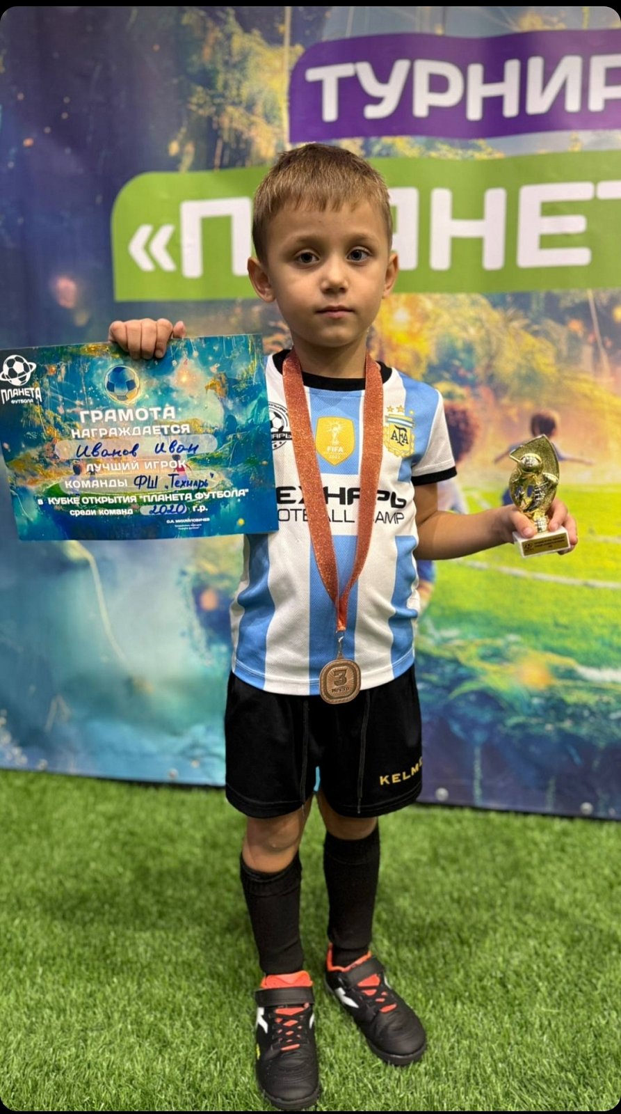«Кубок открытия», в котором приняла участие владимирская команда ФК "Технарь". По итогам турнира владимирская команда заняла 3 место, а воспитанник нашего детского сада Иванов Ваня признан "Лучшим игроком" футбольного клуба.